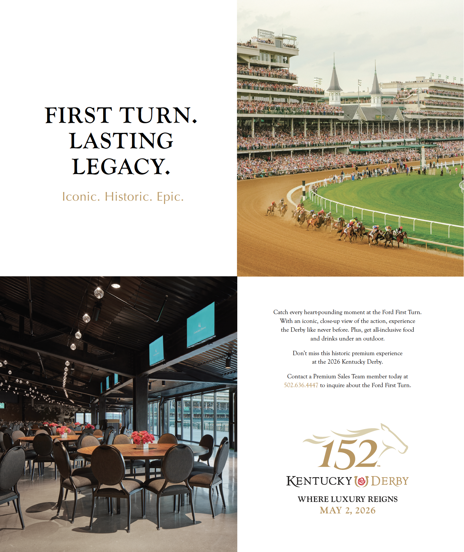 Churchill Downs is the legendary home of amazing events—from Kentucky Derby, to Spring Meet and Fall Meet. This page is a cornucopia of our work over the years that communicate its historic gravitas.