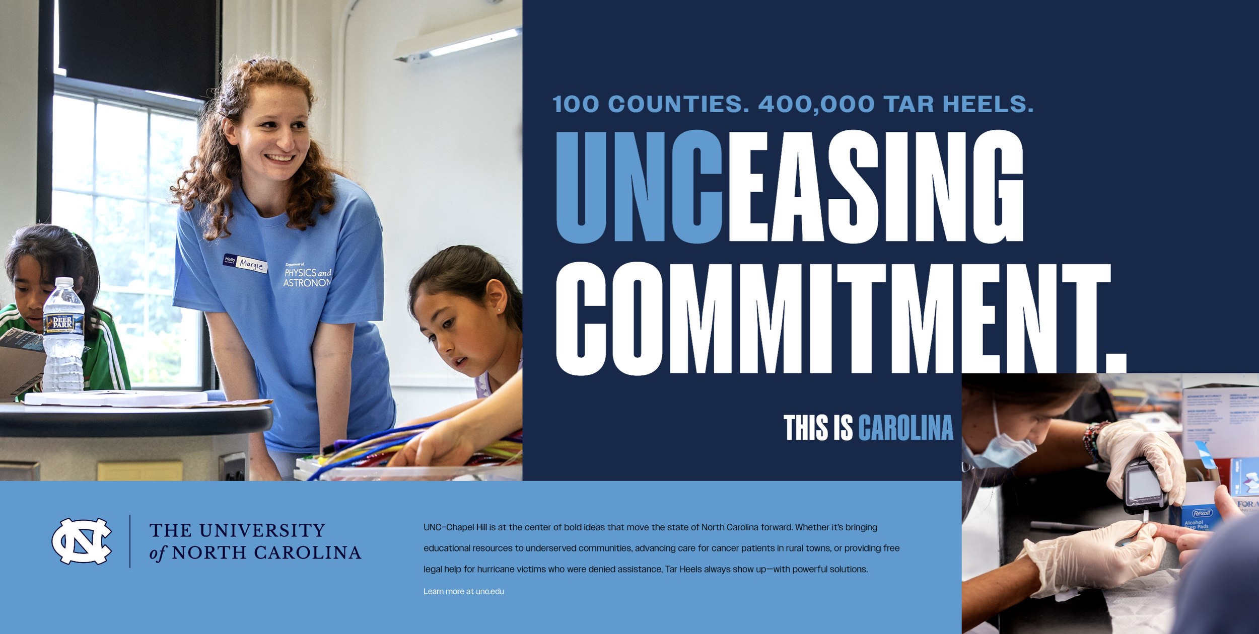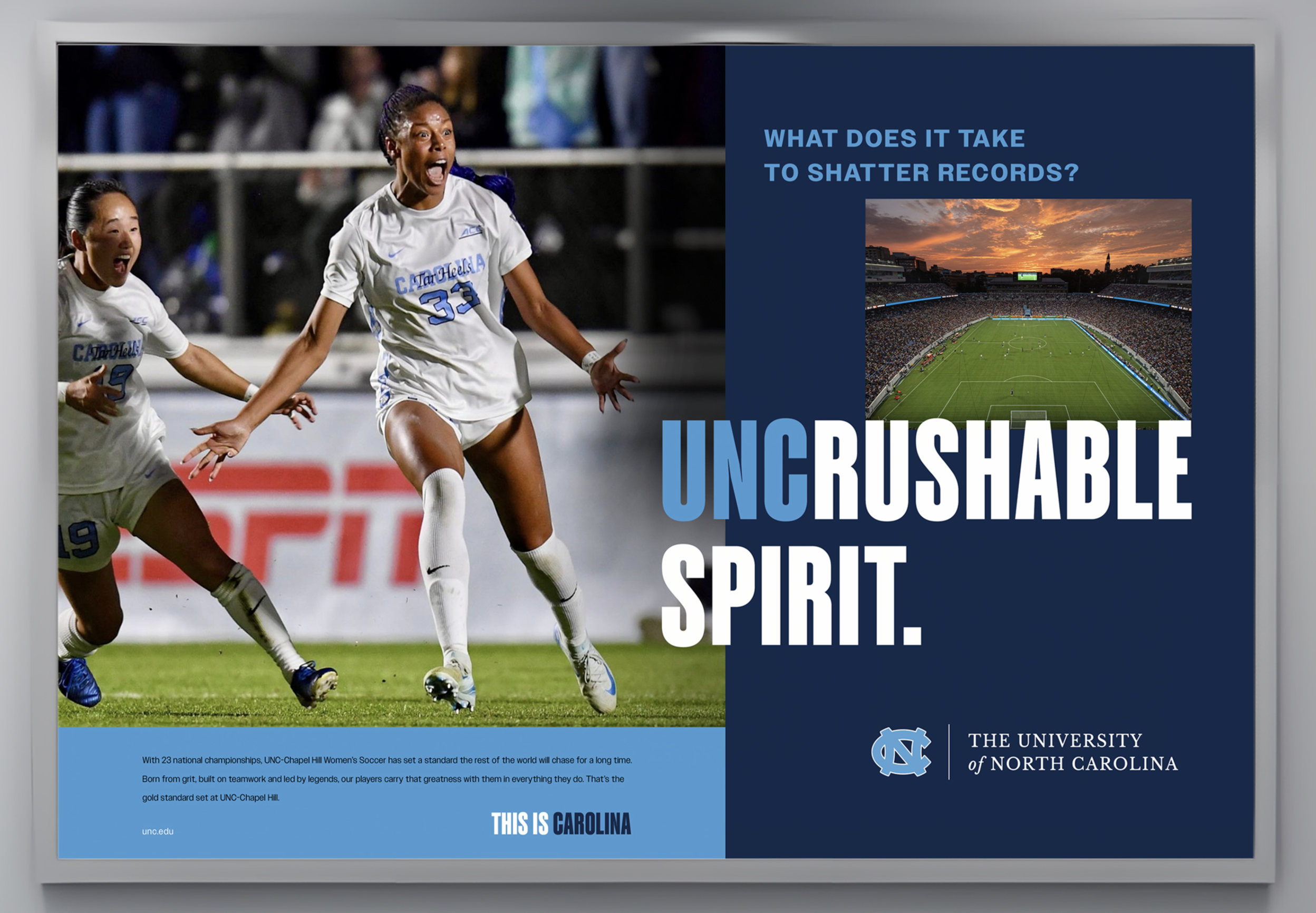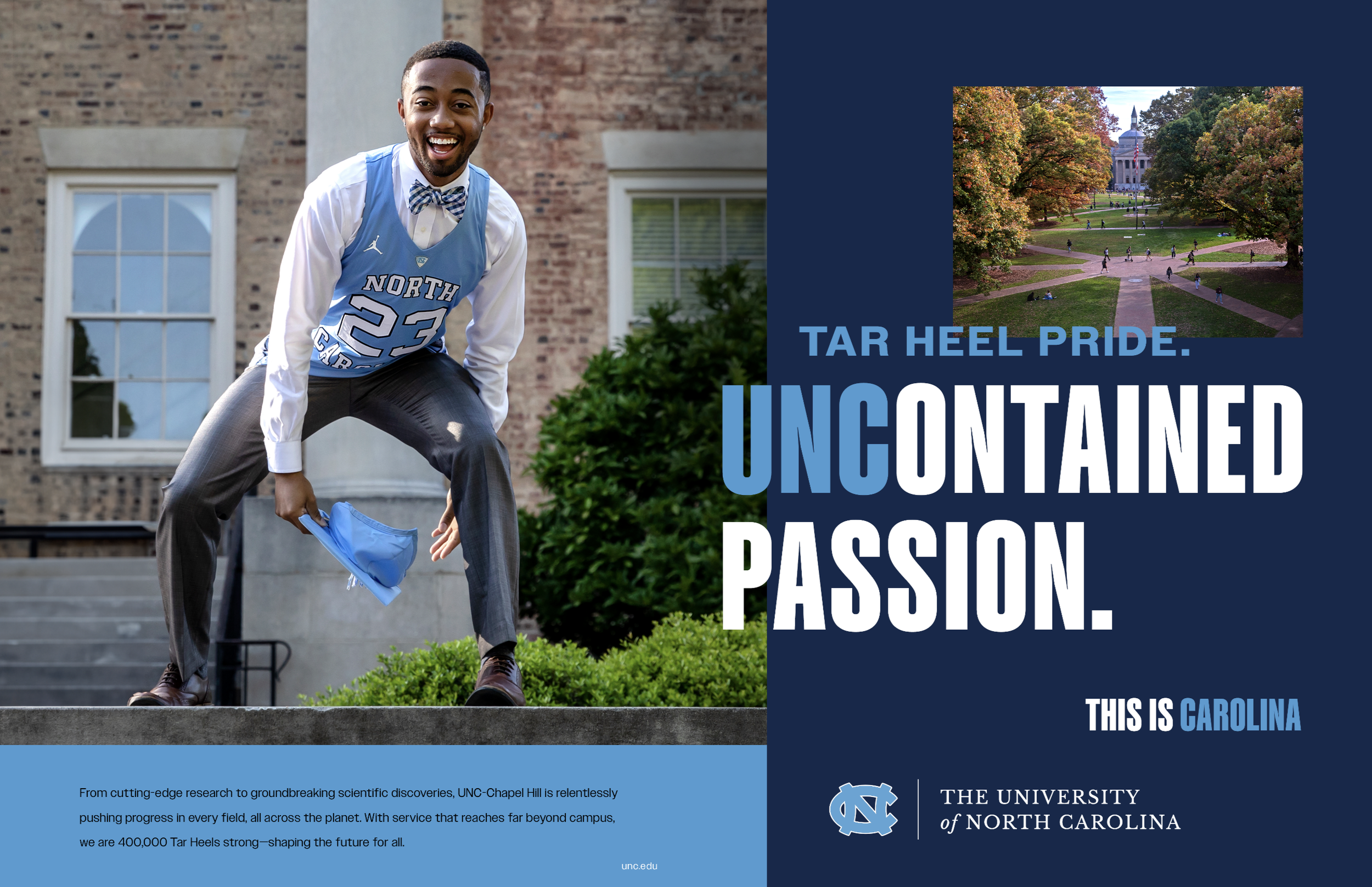 UNC at Chapel Hill is a highly prestigious school that wanted to advance that idea that Tar Heels are the FIRST to raise their hand when a problem arises, FIRST to step in to help their communities, and FIRST when it comes to academic and athletic achievement. So we told their many stories, using the tagline “FIRST. AND FOR ALL.”